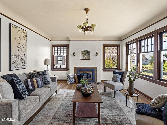 Conveniently located in Yakima's historic neighborhood where many families enjoy walks and bike rides, you'll find this spacious 4bd/2ba home with 3 levels of living space. Built in 1936, it has its original hardwood floors, wood doors, a beautifully updated main floor bathroom and a brand-new wood deck. This home is the perfect blend of charm, character, and convenience! The main floor has a spacious family room with large windows and a gas fireplace. The family room opens to the dining room, which leads to the kitchen through a swinging door, where you'll find a newer stainless-steel fridge, a gas cook-top, not to mention a darling coffee nook. Surrounded by windows; it's the perfect place to start the day or wind-down with a game of cards. The entire main floor has large windows, which let the natural light pour in. The main floor has two good-size bedrooms, and another that can be used as a bedroom or home office with an exit leading to the new deck. Upstairs holds a massive room which, again, whispers the charm of the original age, with angled ceilings, a cozy nook, two large walk-in closets, and a large bathroom. It is a great primary bedroom retreat, or it could be split into two bedrooms, used as a game room, bunk room, or you name it. There are so many options for this incredible space! The partially finished basement also has so much to offer. From loads of storage space, the beginnings of a family room, an additional office/hobby room, and laundry area; it has tons of potential, or you can use it as-is. Outside you will find the large deck, a detached carport, garage, chicken coop area and beautiful front landscaping. Some of the many updates and conveniences of this home include a newer roof, newer ext. paint, gas furnace, central air, and the new deck. This is the perfect place to call home; make it yours today!