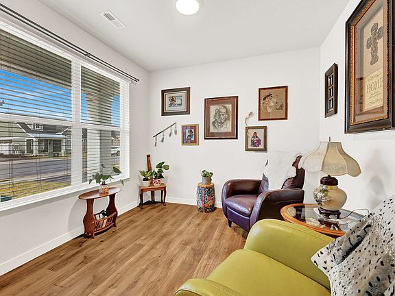 Beautiful single-level home located in a desirable, amenity-filled community! This thoughtfully designed home features an open-concept floor plan with a bright and spacious living area that's perfect for entertaining or relaxing. The modern kitchen offers sleek quartz countertops, stylish cabinetry, and plenty of storage and prep space. The primary suite includes a private bath and walk-in-closet, while the den/office provides flexibility for work, guests, or hobbies. Enjoy outdoor living year-round on the covered patio that is fully fenced. Additional highlights include an attached 2-car garage and access to fantastic community amenities such as a pickleball court and picnic area. Conveniently located near a golf course, parks, and walking paths, with easy access to local shopping and dining. Square footage figures are provided as a courtesy estimate only and were obtained from county records. Buyer is advised to obtain an independent measurement.