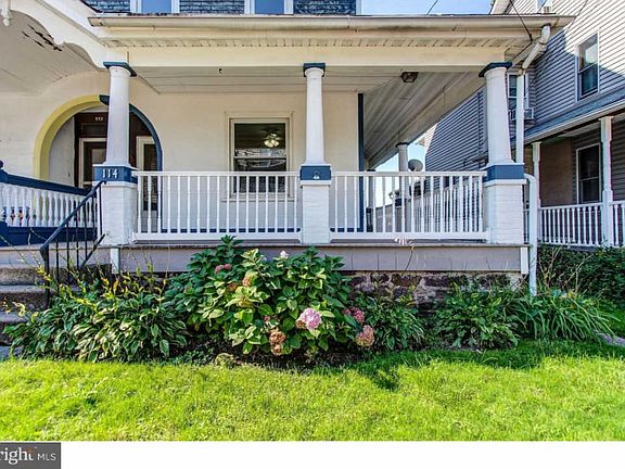 This 3-story Twin Home features 4 bedrooms, 2.5 baths, and a detached 2-car garage! Kick back on the welcoming wrap-around porch that features maintenance free composite board. The front door opens into a vestibule with coat closet and original wood flooring adds character to the formal living room. Delightful pocket doors create privacy and separates the living room from the family room. This room has a ceiling fan, side door access to porch, and half bath. Another pocket door opens into the dining room, with tongue-and-groove wainscot below the chair rail. Kitchen with breakfast bar seating features a tile backsplash that compliments the solid oak cabinets with under cabinet lighting. Upstairs you will find 3 bedrooms with new ceilings fans. Hall bath has a large closet that would be a perfect space for the laundry room. Sweetly isolated on the third-floor is the master suite, with walk-in closet, ensuite bath, and separate room perfect for an office, exersize room, or craft room. Updates include fresh paint, new carpeting, and vinyl replacement windows throughout. Vintage details include ornamental moldings, pocket doors, and transom windows. Verizon Fios. Completely fenced backyard, and a nice patio for entertaining. Just around the corner are tennis courts and a fenced-in playground at Stover Park.