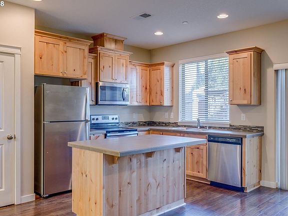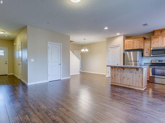 Available in November! Like new 1733 square foot townhome features great-room open concept floor plan perfect for entertaining, laminate flooring throughout main level, kitchen island, tile counter tops, knotty alder cabinets, pantry, stainless steel appliances, refrigerator, washer & dryer, upper level loft area, window blinds, air conditioning, fenced. Large, walk-in closet in Master. Two-car garage with remote opener along with off-street parking for two vehicles. Several parks, play structures, and paved walking trails within the community. Only a few minutes from Ridgefield Wildlife Refuge, new grocery store, Costco, and I-5 access. Owner pays trash and monthly HOA fee.