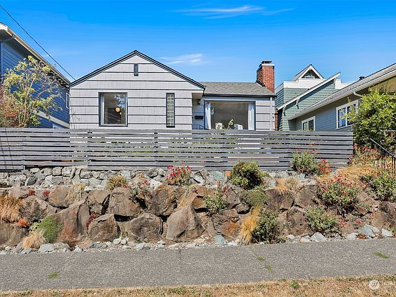 Welcome to the Phinney Ridge neighborhood. Charming mid century classic home has many original art deco touches intact. Southern exposure provides the formal living room & dining room w/ hardwood floors and a fireplace a great place to enjoy natural light year round. Remodeled gourmet kitchen features stainless appliances, tile and marmoleum floors. Main floor with 3 bedrooms & a full bathroom. Unfinished high ceiling basement has expansion potential or a perfect place for a workshop/studio/storage. Detached 1 car carport w/alley access and an EV outlet. Back courtyard & deck make for a great outdoor dining space. Front yard garden beds provide great light for home grown organic food. Great location between Phinney & Greenwood.