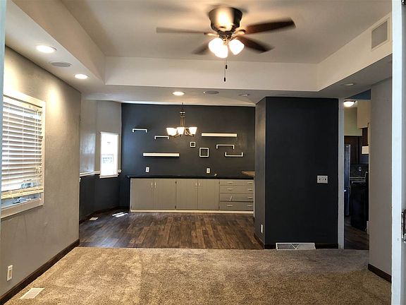 Great LOCATION close to downtown and walking distance to school! This 4 bedroom 2 bath HOME is spacious inside, current owners have made it open and inviting with new drywall, lighting and surround sound in the living room, built in cabinets in the dining, bar separates the kitchen with updated appliances, main floor laundry, bath and master bedroom, the upstairs offers 3 bedrooms with hardwood floors, full bath and walk up attic. New windows, fenced yard and det garage currently being used as a man cave.