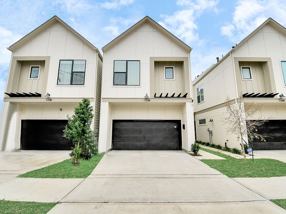 ALL APPLIANCES INCLUDED! Just 2 miles from downtown is this spacious 2-level rental with 3 bedrooms, 3.5 baths. Open floor plan with main living areas on the first level. Glass doors lead to a sizable porch and private yard. The kitchen includes quartz countertops and shaker cabinetry. There's also the primary bed on the second floor plus the two other bedrooms, and a large utility room. The en-suite bath for the primary bath features expansive windows and a spa-like bath with dual vanities, freestanding soaking tub, glass-enclosed shower, and a walk-in closet with built-ins. Home is vacant, unfurnished, and available for immediate occupancy.