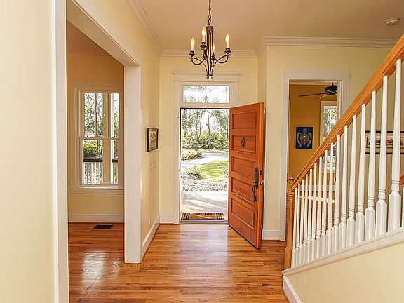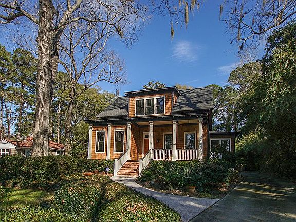This exceptional Hermitage Road custom home situated is on 1/2 acre very high lot. Well designed and spacious floor plan with wood floors throughout the living area. Gourmet eat-in kitchen, great room with fireplace, office, master suite, screened in porch and utility room on the first floor. Upstairs with 2 large bedrooms and bonus room. Outdoor living space includes screened porch with fireplace for entertaining. And large fenced in backyard. Detached garage has unfinished space above, and storage closet. The Spanish Moss Trail nearby for short walk or bike ride to historic downtown Beaufort.