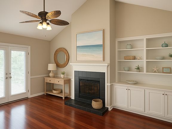 Hardwood floorsPrivate backyardTwo patiosScreened-in dining areaCherry kitchenVaulted ceilings