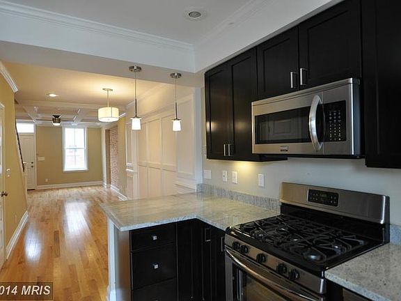 Gorgeous Renovation with 10 Year CHAP Tax Credit & PARKING by CHANCE DEVELOPMENT! High-end finishes & custom trim throught this 14 ft. wide home. 3 br, 3 bath, fully fin basement, rear deck, ceramic tile baths w/custom tile work. Large, gourmet kitchen with 7 ft. island, granite & SS appliances. Wide street with angled parking, just one block from Patterson Park!