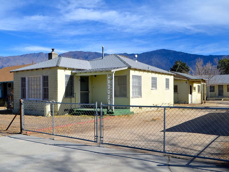 Front unit is 750 Square foot 1 bedroom 1 bathroom cottage. Spacious unit with lots of windows for natural light throughout. Back unit is 729 square foot 2 bedroom one bath unit open living room kitchen area and large walk in closet. Between the units is 252 square foot outbuilding used for storage but it does have water and sewer at the east end so it could also be plumbed. Units have peeling paint and need some updating but are easily rented or use one as your own place and rent the other. Propane and electricity are metered separately for each unit, water is on one service. Fully fenced with views of Mt Whitney and the Sierra!