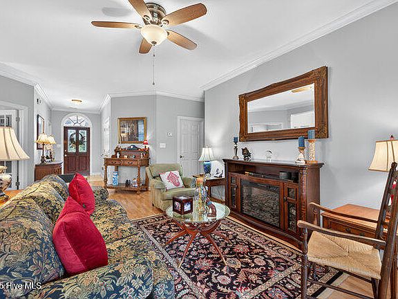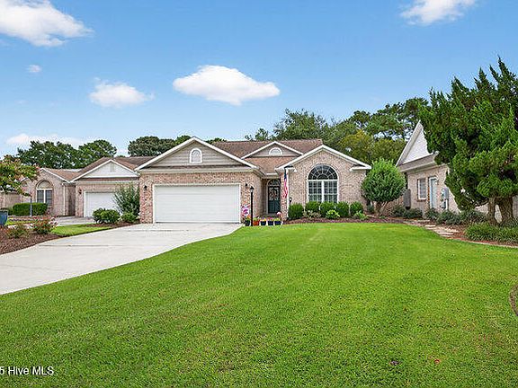 Elegance meets ease with coastal living on the golf course! This 3BR/2BA open concept beautifully maintained home offers a split bedroom floorplan, granite countertops, and stainless appliances that feature a gas range. Solid surface flooring throughout keeps this home fresh, stylish, and easy to maintain. The primary suite is its own private wing, boasting multiple closets and a spa like feel in the en suite bath. Gorgeous crown molding and plantation blinds accent your living spaces, while french doors open to a screened patio overlooking the 10th fairway. Upgrades even extend to the garage, sporting a lovely epoxy floor! Just over the bridge to the beaches of North Topsail, you have location, style, and comfort all in one!