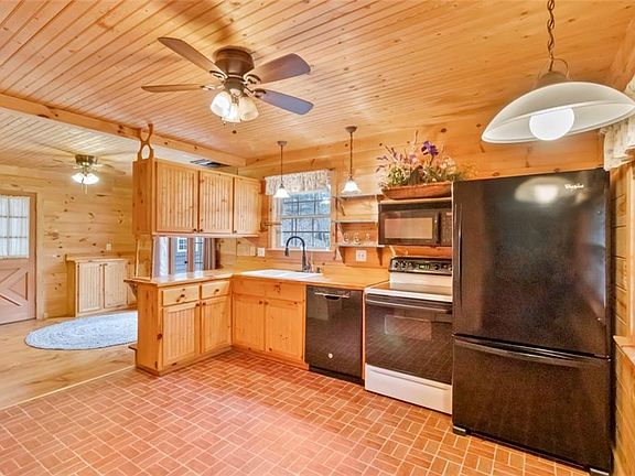 Nestled in the woods, overlooking two converging streams. This Modern Cabin has 4 bedrooms and 3 bathrooms. Perfect for those that want to live here full time, or just enjoy it as a weekend getaway. The yard is virtually maintenance free. As you enter the home you will feel welcomed by the natural wood walls. This will lead you to the kitchen and dining area. The first floor also has a living room as well as a master suite. As you head upstairs you will notice another master that has a private deck overlooking a creek. The basement has two large bedrooms a bathroom and a private porch which could be great for guest. Outside there is a large deck as well as a hot tub which could be great for entertaining any day of the week. The detached garage has a nice bonus room above it which could be used for many purposes. The home is located in Chickasaw Point which includes a 18 hole golf course, swimming pool, tennis courts, club house, and marina on Lake Hartwell. This community is the best bang for the buck with very low HOA fees for a maximum amount of amenities. Don't wait on this amazing opportunity.