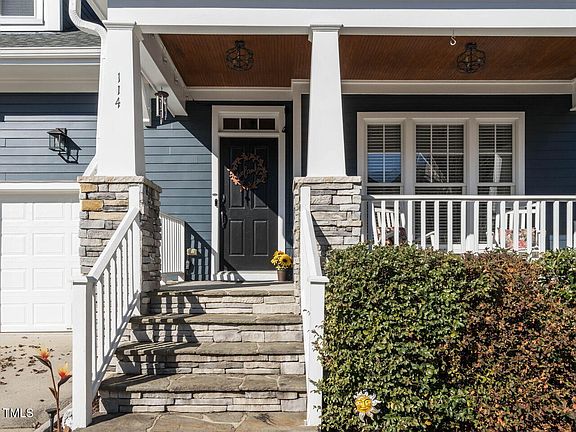 Don't miss this meticulously maintained home in West Cary's sought-after Cary Park! Enjoy morning coffee on your rocking chair front porch or take your coffee to go on a walk around the pond on the neighborhood's many paved trails. The light-filled first floor features wood floors, gorgeous windows, dining room/office space, first floor primary suite with soaking tub, eat-in kitchen with large pantry and updated appliances--gas range, dishwasher, refrigerator. A gas fireplace will keep you cozy all winter! Head up to the second floor for two additional bedrooms and a large bonus room for work, study or play! Ample under eave storage and closet space. Relax in your private, fenced back yard with patio and gazebo perfect for outdoor entertaining. Two car garage includes overhead storage racks to maximize space. Cary Park amenities are around the corner and include clubhouse, optional pool membership, swim club, walking trails, playground and a neighborhood pond. Close to shopping, restaurants, American Tobacco Trail and RTP! Great schools! Don't miss this one! Welcome home!