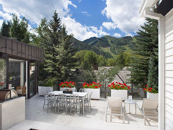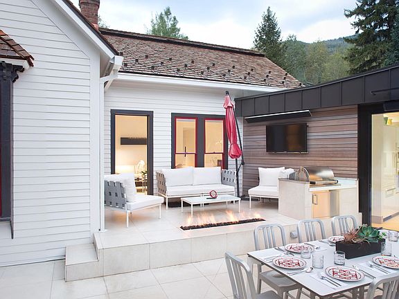 Take a step out of Aspen's storied history into a modern-day masterpiece! Perched on an elevated corner lot with front row views of Aspen Mountain, the original cabin was built in 1886. The total transformation of the space, led by celebrated architect Steev Wilson, was a five-year process completed in 2018, and the thoughtful design permeates the home. Preserving the integrity of the original Victorian architecture, the main living and dining room invite guests into a light and airy gathering space. A heated veranda complete with a built-in fire pit, grill, lounge seating and outdoor dining seamlessly connects the historic part of the home with the new, contemporary addition.