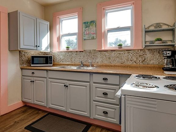 Welcome to this second-level apartment at the Retro Rainbow Herb River Hideaway, just 8 miles from downtown Savannah. This recently updated 3-bedroom, 1-bathroom unit offers all the comforts of home and is a short walk to the river. Enjoy a scenic 30-minute drive to Tybee Island for a day at the beach. The apartment features both professional shots and real-time images, so you know exactly what to expect. Upon arrival, you will be greeted with a set of stairs leading to the upper-level apartment. Inside, the living room features a large flat-screen TV complete with Roku and a queen-size sleeper sofa. To the left are two bedrooms, one with a queen bed and the other with a double bed. One of these bedrooms also has direct access to a large screened-in deck with another flat-screen TV. The dining room is to the left of the entrance and is attached to a kitchen stocked with all your basic cooking needs. Towards the back of the house, you will find a full bathroom and the third bedroom, which contains a king-size bed. The large upper-level covered deck with plenty of seating is a great place to start or end your day. Two parking spots are available for guests, one in a gravel driveway and an extra area on the grass to the right of the hedge. The apartment is pet-friendly, and all pets require a non-refundable pet fee. Pets must be crated when left unattended in the home and are not allowed on furniture or beds. All waste must be cleaned up from the yard. If there is evidence of pet hair on the furniture, excess hair in the home, stains, or waste found in the yard or home, you will be charged the cost to clean this. The neighborhood exudes southern style Savannah, with the home situated near the marsh that meets the Herb River. Enjoy breezy nights and mature trees dripping in Spanish Moss. While driving is recommended, Uber and Lyft service the area as well. The house has a digital combo lock pad, and you will be provided with the code upon check-in. Check-in and check-out are automated to provide maximum privacy and flexibility. A signed rental agreement is required, and guests must be 21 years of age to book.