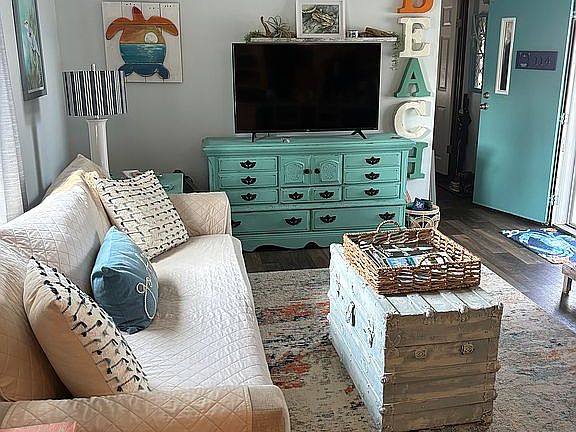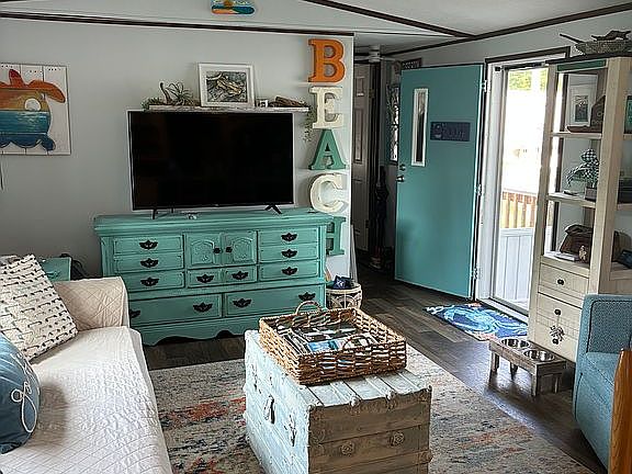 Fully furnished! Most of the decor will stay! Beautiful coastal decorated manufactured home ready to make memories. Vacation home only! No renting Lot rent $3870 annually Beautiful 10x24 screened porch, new 10x20 deck, professionally painted inside, sleeper sofa, extra fridge, wine cooler, and microwave. A must see!