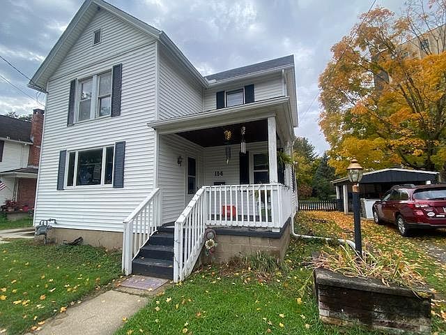 This home has very large, fenced back yard that borders the beautiful Conewango Creek. The first floor has newer flooring, nice living room and a large dining room that is currently used as a family room. There is a room on first floor that is being used as a bedroom, but would make a nice office for those working from home. There is a full bath with walk-in shower and laundry on the first floor for those that want one floor living. There's three bedrooms and full bath on the second floor (current owner has not been using them). The home features newer electric, hot water tank, and the boiler is only a year old. The covered back patio and nice front porch are great spots for relaxing outside. The carport could have garage door added if desired. Call today!