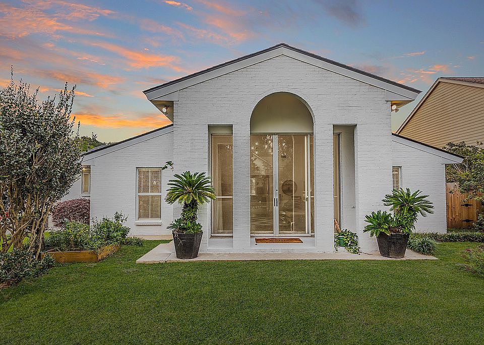 Looking for a home that isn’t cookie cutter? This remodeled contemporary home in beautiful Oakbourne Estates fits the bill! Built & designed by a former USL architect professor. This 2 Bd Rm 2 Bth Flex space floor plan has been updated with all new flooring, paint, beautiful solid butcher block counter tops throughout, NEW ROOF, LED lighting, and so much more. Solid walls, center matched ceilings, accented sliding glass entryway doors, & multiple storage units show the attention to detail and quality this home was constructed with. The open floorplan area combines kitchen with Island counter seating, wet bar service counter, dining room with informal living/flex space accented by floor to ceiling walk thru windows & fireplace. Split floor plan area houses 2 ensuite rooms. The master, and Bd Rm 2 are separated by the grand living area, also accented with fireplace, wood floors, and sliding glass doors. The exterior of the home offers separate 2 car covered parking, large private concreted patio for entertaining, and a storage shed. The rear access of the home is fully fenced and has a storage shed.