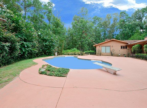 REDUCED! Amazing property with brick home, salt-water pool, detached apt & detached 2 car garage/workshop nestled on spectacular 2.5-acre setting! Foyer with stone floor, huge living room with awesome vaulted, beamed ceiling and wood-burning fireplace! Kitchen with gorgeous wide-plank pine floors, double oven, island, breakfast area & pantry! Huge dining room with side serving board with sink! Expansive Owner's suite with double-sink vanity, awesome built-ins, walk-in closet, shower & water closet! Guest bedroom with cedar-lined closet, hardwood floors! Other bedroom with walk-in closet! Spare bath with tile floor & granite! Huge den with built-ins & half-bath offer more entertaining area or could be made into 4th bedroom! Circular driveway & attached 2-car garage! Detached 1000 sq ft garage apt with kitchen, tiled floors, micro & full bath & walk-in closet! Cabana area with sink & full bath for easy pool access! Laundry room with lots of storage!