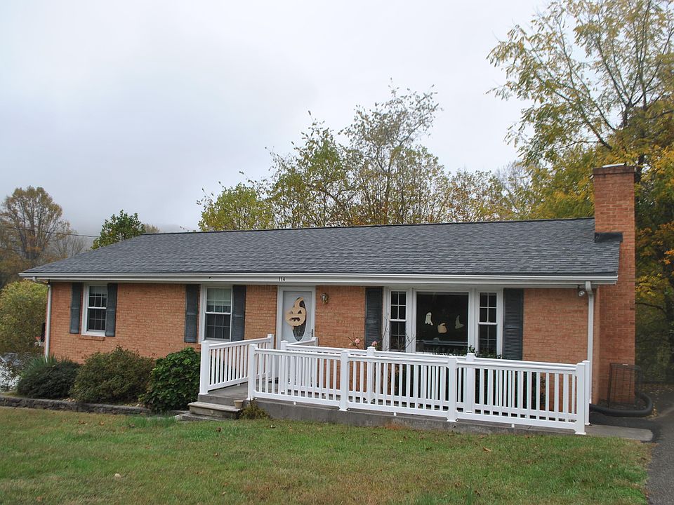 Nice all brick ranch in a great neighborhood just outside Vinton with low Bedford taxes. Hardwood floors, replacement windows, eat-in kitchen, master suite, living room with gas fireplace. Down stairs features a family room with a fireplace, den, 4th bedroom, full bath, laundry, storage and more. It also has a rear deck with Trex decking, two paved driveways and a single car garage.