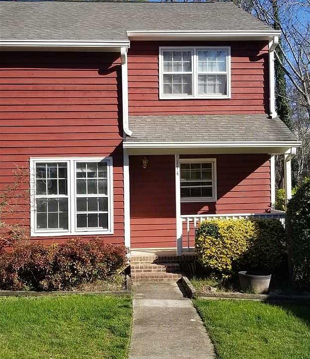 Lovely townhome in the gorgeous Woodcroft Community! Fresh paint throughout! Spacious rooms with a bonus room in the basement! Each bedroom has large closets and a private full bath attached! Large living room with a wood burning fireplace. This is an END UNIT that backs up to the walking trails in the community. Close to shopping and highways! Large utility area in the basement as well!