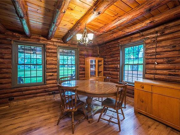 Custom Log Home with 4 Bedrooms and 3 Full Baths Situated on 15.27 Private and Serene Acres! Large Covered Front Porch, Eat-In Kitchen with Large Center Island, Open to Dining Room and Access Door to Rear Yard, Large Family Room with Raised Brick Hearth Fireplace, Wood and Ceramic Floors Throughout, Generous Room Sizes, Finished Walk Out Lower Level with Den, Game Room and Laundry Room with Plenty of Storage! The Detached 2 Car Garage Boasts a Separate 23x11 Work Out Room / Den with a Private Entrance and a Large Woodshop Area, Level Yard with Above Ground Pool! The Home is Privately Set off of the Road with an Extended Paved Driveway, The Property is Mostly Wooded and Has Extensive Frontage on Old National Pike! Ideal Location and McGuffey Schools!