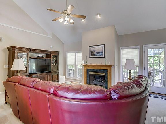 Immaculate & move in ready transitional home in desirable Cary location. Spacious family rm features soaring cathedral ceiling & gas log fp. Bright & open eat-in kitchen. 1st floor office. 1st floor master suite has trey ceiling, his & hers closets & soaking tub w/ separate tile shower. Large bonus rm. Oversized Trex deck w/ awning. 3 car garage! Extensively landscaped property w/ fenced backyard. Irrigation system. Amazing wooded views. Surrounded by wooded views. New roof 2017. New water heater 2020.