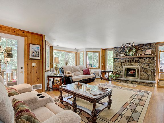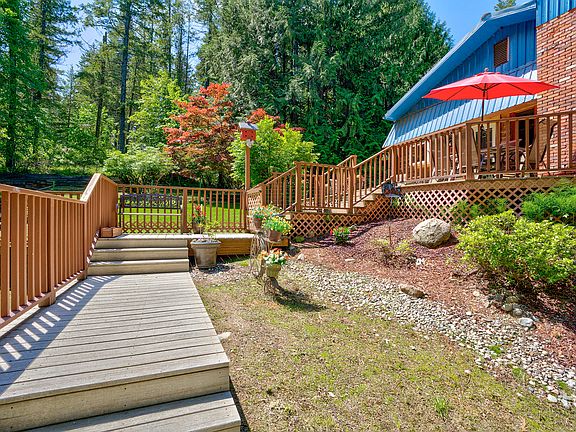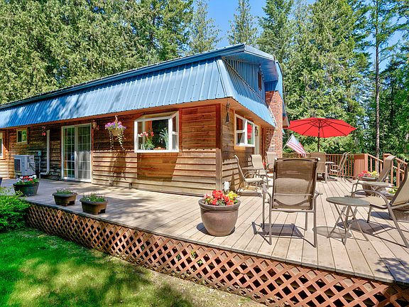 4 bed/3bath custom home tucked away on 1.5 acres surrounded by mature cedar trees. Very peaceful setting in a secluded area with filtered views of the Pend Oreille River. Spacious living room with a floor to ceiling rock fireplace & large windows allowing an abundance of natural light. Kitchen has a large island with cabinets, & two garden windows. Very open dining room with a bar area, prep sink, ceiling fan & a sliding glass door that allows access to the deck. Master bedroom has vaulted t&g ceilings with a sitting area & it's own private balcony. The downstairs consists of a second master with a large living area that includes its own French door entrance. This space is great for visiting family, friends & or company & could be considered for mother in law quarters.