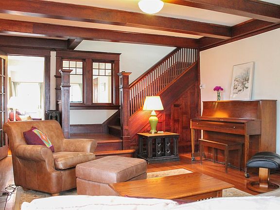 Historic Arts & Crafts home very close to campus on a private street with all owner occupied residents. Lovingly maintained with gorgeous woodwork, beamed ceilings in the living and dining rooms, many built-ins, and very nice room flow. Former back porch has been thoughtfully incorporated into the living space as a cozy family room with full bath. Four bedrooms, two bathrooms on 3 floors of living space. Two second floor bedrooms could possibly be turned into a nice master suite. One car garage and off street parking for 2 cars.