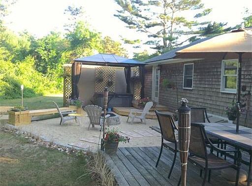 Back Yard Paradise! Dream on into this TURN-KEY 3BR/2BA Ranch located close to dream amenities including Mashpee Commons, boat ramp & town landing only minutes away. Beautifully updated, proud to feature an OPEN FLOOR PLAN, priced to sell opportunity & the 1st floor living so many are dreaming to find in this price range in Mashpee! Built in 2001, featuring updated 200 amp electrical, gas stove, stainless steel appliances, white cabinetry, recessed lighting, center island & beautifully custom crafted tile & glass back splash in kitchen. Feel the warmth of cathedral beamed ceilings in living rm & the bright open feel that comes along with it! Want to relax outside? How about a fire by your own beach & deck area or soak in the hot tub undercover & away from it all. Will not last! Buyers/buyers agent to verify information contained herein