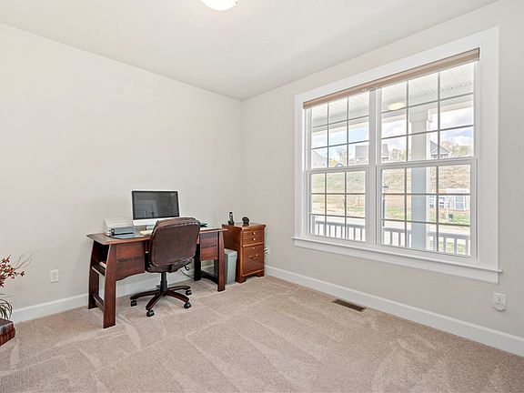 Home for the holiday! No need to wait for new construction to move into this top of the line three-month-old beauty with three levels & an open floor plan that you will love when entertaining. Check out the amazing panoramic views year-round on the covered deck off the great room. Work from home in the 1st floor office/bedroom with full bath, enjoy the sunlit great room with tray ceiling & cozy fireplace which is open to a well-designed kitchen & dining area with light high end perimeter cabinets, under counter lighting, comtrasting center island with seating, abundant granite counters & cabinet space, pendant & tons of recessed lighting. Hardwood floors in the foyer, living room, dining area, kitchen, & hallway add warmth & contrast to the neutral walls, first floor laundry. Second floor loft, bedroom & full bath. The amazing lower level is finished with wet bar, walkout game room to a patio, spacious guest bedroom & full bath. generous storage space, perfect condition, cul de sac st.