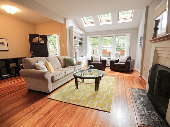 This completely unique and expanded bungalow will charm you! Featuring fresh paint, updated baths and light fixtures, a brand new kitchen, new carpet, refinished hardwood floors and plenty of windows providing tons of natural light, no expense has been spared! Step onto the front porch and into the open foyer, living and dining rooms; continue into a fabulous eat-in kitchen featuring Wolf Dartmouth series cabinets, granite counters and new ceramic tile floor, sky lights and large windows overlooking the backyard. A few steps further, find den offering new carpet and a potbelly stove-perfect for cozy winter evenings. Down the hall find a renovated bathroom and large 5th bedroom/home office. Travel upstairs to find a landing area that is perfect for relaxing, four bedrooms and an additional full Jack-n-Jill bath. The unfinished basement is full of finish potential and features a laundry area, utility sink and six windows. The exterior of this home is just as captivating with a covered front porch, deck off the kitchen and large backyard- perfect for kids and gardeners alike! This move-in ready home will steal your heart, come see it today! For more information, visit our property specific website. www.114parkave.com