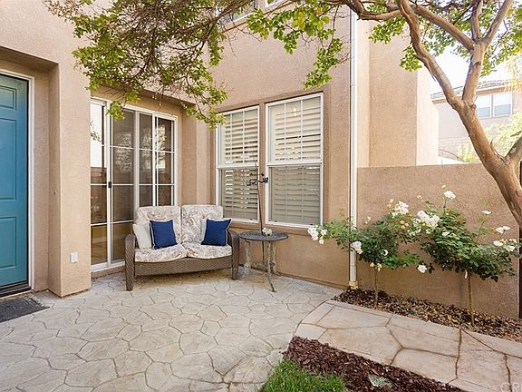 This home will go fast! 4 bedroom, 2.5 bath, and 2465 Sqft. Walk up the beautiful stamped concrete driveway into the private entrance and courtyard. Step inside to see an open floor plan and charming home! Cozy family room has a ceiling fan, recessed lights, and wood shutters. To the right of the entry is a large kitchen! Tiled floors, granite counter tops, lots of cabinet space and open to the dining room. Great size dining room has plenty of space for everyone, and offers a fireplace, wood shutters, and lots of natural light that comes through. The open floor plans continues upstairs with a charming space at the top of the stairs with a beautiful bookshelf. 3 Bedrooms plus the master are upstairs. Relaxing master suite has a beautiful faux finish paint, natural light, wood shutters & a large master bath with a walk in closet, dual sinks, tile floors and a soaking tub! Down the hall is 2 bedrooms and a full bath, jack and Jill style. The 3rd guest bedroom has its own private balcony with a sitting area. Backyard! 100K spent on ,Recently completely upgraded this yard is a relaxing oasis, don't let the size fool you! High ceiling patio, 2 fire pits, sitting areas, built in BBQ with large counter and bar top seating. Also offers a Spool with a rock waterfall, outside heaters, and stamped concrete grounds. it is Gorgeous! Gated community surrounded by award winning, top rated schools. This homes offers it all... amazing community, large open floor plan, resort style yard & more.