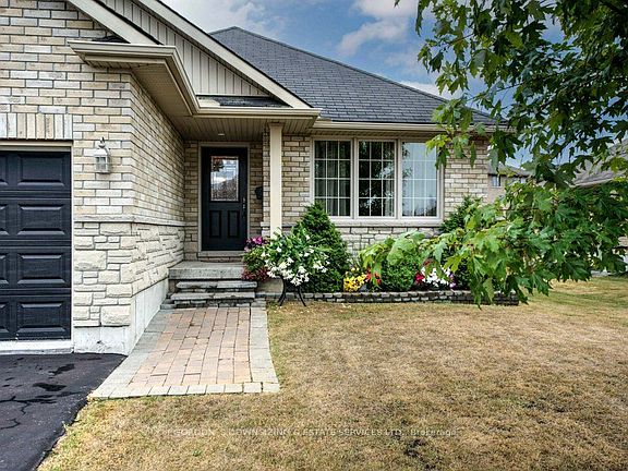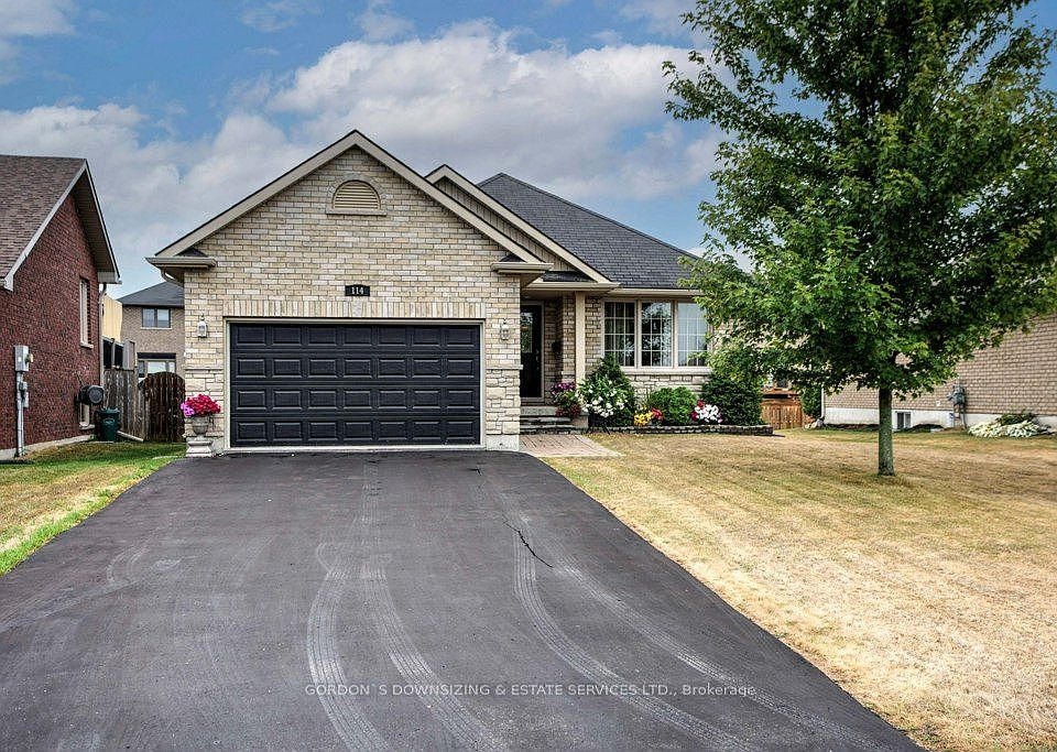 This inviting 2 + 1 bedroom bungalow in Trenton enjoys a desirable southeastern exposure, filling the home with natural light. The open-concept kitchen, dining, and sunken family room create a welcoming central hub, highlighted by floor-to-ceiling windows that frame the outdoors beautifully and provide direct access to the large backyard. The granite kitchen offers sophistication, and a pantry allows for additional storage. A separate living room provides a relaxed retreat with a built-in electric fireplace and stone surround. Hardwood floors run throughout the main living areas, adding warmth and elegance. The carpeted bedrooms are designed for comfort, with the primary suite featuring double closets and a private three-piece ensuite bathroom. An additional bedroom is serviced by a well-appointed shared four-piece family bathroom, making the layout ideal for families or guests. The thoughtful design balances open gathering spaces with private retreats, ensuring functionality for modern living. Downstairs, the basement offers a 3rd bedroom or versatile flex room that can serve as a rec room or home office, complemented by an additional three-piece bathroom. The rest of the basement space is unfinished, providing endless possibilities for customization. With its bright orientation, spacious layout, and quality finishes, this bungalow is a wonderful place to call home. Home inspection available.