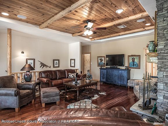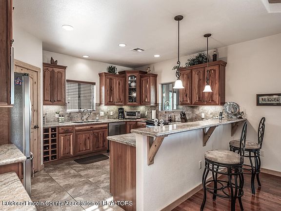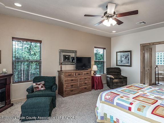 This custom built Southwest beauty has it all! Enter thru charming professionally landscaped courtyard w/ kiva style fireplace. Main living area features imported mesquite hardwood floors w/ cactus pine ceilings. Gourmet kitchen w/ stainless appliances & large pantry. Cherrywood cabinets throughout home. Stacked stone fireplace. Entertain on spacious decks w/ fabulous Sierra Blanca view. All 5 bedrooms have in suite baths. Downstairs living area/rec room has wet bar w/ under counter refrigerator, home office & hot tub. Tons of storage & workshop under home. New TPO roof 8/21. Full Golf Alto lot included with acceptable offer. Please ask to see features sheet for all the great things this home offers. 1 owner home has always been a part time home & feels new!!! Fully furnished