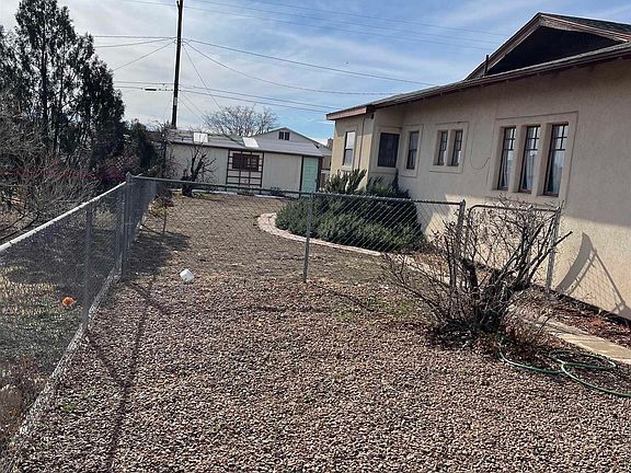 Very nice bungalow, move-in condition, and beautiful hardwood floors. Roomy kitchen, extra room could be hobby room, dining room or office. Spacious living area with shiny hardwood floors. Bath is located between the two bedrooms. Bathroom is upgraded and handicap accessible. Large yard, chainlink fenced front and back with front and back yards separated by chainlink fence. Old detached garage and workshop. Double gate allows driving into backyard from alley way. Back patio has a metal carport-type cover. Be sure to check this one out! Being sold "as is."