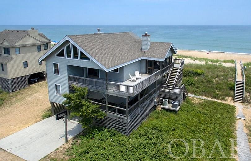 YOU WILL LOVE THIS OCEANFRONT HOME!! PUT ON YOUR BEST BUY LIST! AMAZING VIEWS!! STRONG RENTAL HISTORY! This beautiful Sanderling oceanfront home is located behind a double dune overlooking a wide uncrowded beach! Panoramic ocean views!! The house is bright and airy inside with four bedrooms and three baths. The second floor great room has a beamed cathedral ceiling with large windows that look out to the ocean. A loft area, accessed with a spiral staircase, provides a an inviting and private sunny space to read or converse with friends. The spacious kitchen opens to a large dining area which is adjoined by an awesome screened in porch. Meticulously maintained, this home has everything that vacationers want. Relax in the hot tub, enjoy a book beside the fireplace or just gaze at the dolphins from the decks. The home's exterior is clad in hardiplank siding for lasting durability and easy maintenance. Enjoy this home now, just as it is, with its prime beachfront location and strong rental income. For the future, it offers potential expansion possibilities by enclosing some of the covered porch area and reworking the interior space to add additional bedrooms and baths. THIS IS THE QUINTESSENTIAL OCEANFRONT HOME...TRULY A MUST SEE! Sanderling is a highly desirable community. It is quiet and comfortable. Once a bird sanctuary, there are nature paths through the entire subdivision. Two soundfront accesses and ramps make boating, kayaking, windsurfing, kite surfing and paddle boarding accessible. Kids will love the crabbing docks. Sunset views are there for daily enjoyment. The amenity complex includes a large pool, a kiddie pool, tennis courts and a state of the art work out facility explicitly for owners and their families. Three highly acclaimed restaurants are within a comfortable walk.
