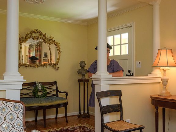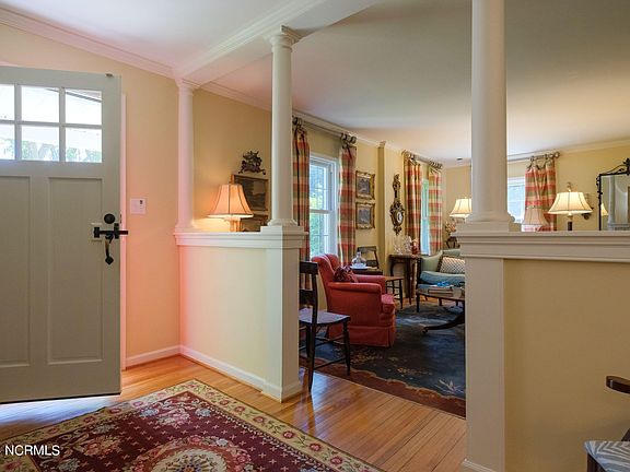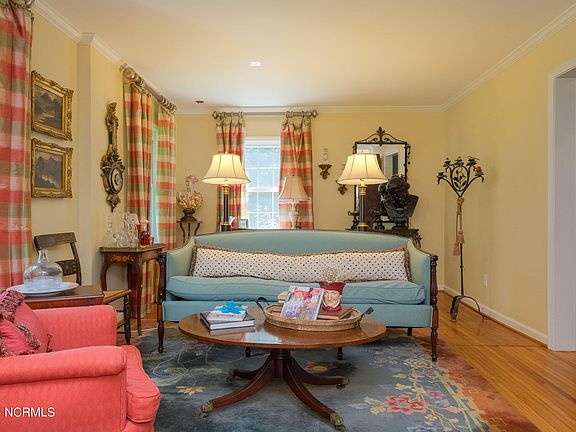 This delightful home affords the RARE opportunity to enjoy single level living in downtown Edenton! Located on Pembroke Circle, an established waterfront neighborhood on Edenton Bay, it's an easy two block stroll to downtown shops and restaurants. Boasting a double lot with lovely established landscaping and quiet privacy, the brick home has been seamlessly enlarged from its original footprint. A traditional entry and formal living room give way to a spacious great room that's open to a sunny breakfast area and stunning kitchen. A gorgeous paneled room is flexible for dining or library space - and artfully used now as a combination of the two! Two guest rooms share a full bath, and the huge master suite features a recently remodeled bathroom. and master suite. The great room opens to the screened porch overlooking the patio. Outside, a guest apartment is atop an oversized double garage. Two bedrooms, a living area, kitchen and bath offer a fabulous private space for guests - or use it as an income producing rental! The entire property has been well updated and are in excellent shape - including a new roof on the main house. This exceptional listing is truly a rare combination!