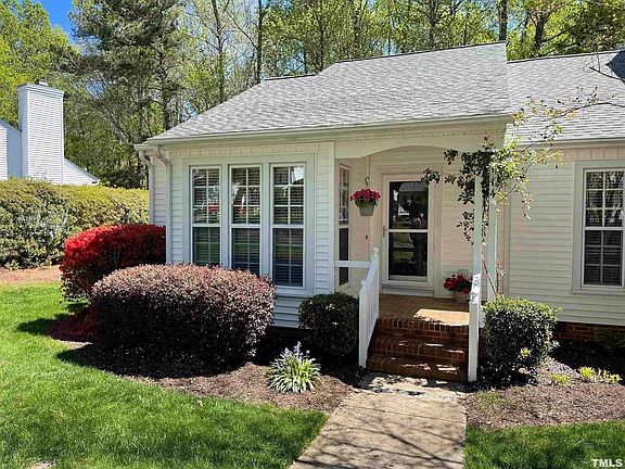Beautiful END UNIT RANCH townhome features 2 bedrooms + 2 bath + den + living room + dining room + eat in kitchen! Living Room has soaring ceilings and tons of natural light. Main bedroom has private bathroom and walk-in closet. Den has built-in desk. Kitchen has granite countertops, pantry, natural light, and hardwood cabinets. Large deck with views of wooded natural area. Wonderful Cary location near Kildaire Farms Rd & Cary Pkwy. Just minutes to Trader Joe's! Storage closet off deck. NO PETS.