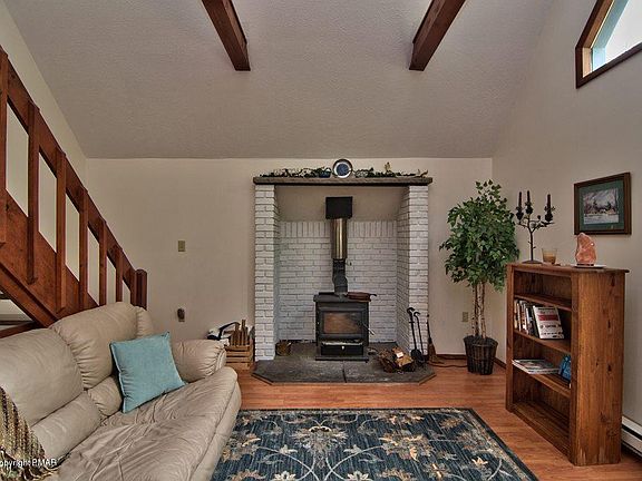 Enjoy the sounds of the meandering stream from your 3 season room of this stunning 3 bedroom, 2.5 bathroom Chalet, located on a private lot at the end of a cul-de-sac. There are 3 levels of living with room for everyone. The master bedroom and bathroom encompass the entire 2nd floor. On the main level you will find a living room with efficient wood stove for those chilly nights, dining room, kitchen and breakfast area and 1/2 bathroom. On the lower level, there are 2 more bedrooms, 1 full bathroom, and a family room. Most of the furniture is included in the sale, and all you have to do is unpack your bags and enjoy the serenity.