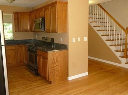 Unique opportunity to own this fantastic 11year young 3 BEDROOM, 2.5 bath townhouse duplex. Enjoy 3 levels of ALL HARD SURFACES (no carpets anywhere!) Why rent or wait for new construction when you can have it all at a very affordable price. This one has granite countertops & fully applianced stainless kitchen, central air conditioning, Impressive master suite w/walk-in & second closet with dedicated full bath on third level. Generous sized bedrooms with separate laundry room on 2nd level. & convenience of double sink bath. AFFORDABLE gas heat and gas cooking too! Private water view of pond & direct access for fine fishing! Full unfinished lower level is perfect for needed storage and possible expansion. Near RI line location offers easy highway & commuter rail access! Hardwoods and tile in all finished areas. Ask for details!