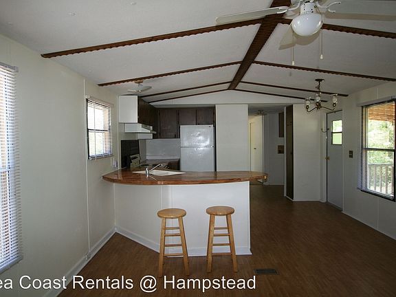 Nice place in Virginia Creek-Hampstead - Nice mobile home in quiet park on 1 acre lot. Open living room and kitchen. Kitchen is equipped with stove and refrig. Bedrooms on either end of home with bathroom close to left bedroom. Laundry across from bathroom with washer and dryer hook up. Deck on back. Wall A/C's, well and septic so no water or sewer bill. Pet allowed with nonrefundable pet fee No Smoking in unit Application fee applies. school district-North Topsail (RLNE2444959)