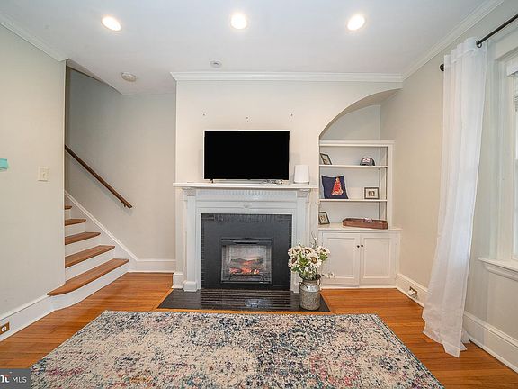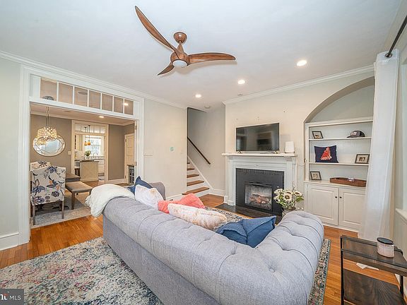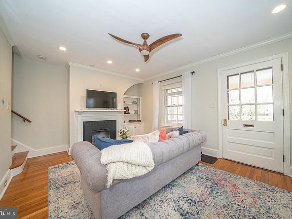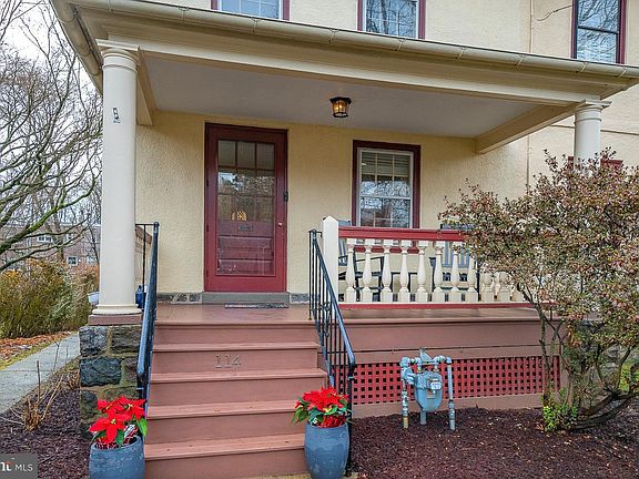 This charming twin-home near the heart of Wayne welcomes you as you head up the path and onto the cozy front porch. Enter into the Living Room with hardwood floors and fireplace with wooden mantle and electric insert. Built-in shelves add function and architectural interest to the space and recessed lighting & large windows allow for plenty of natural light. French doors with transom windows lead to the Dining Room where the hardwood floors, recessed lighting, and built-in shelving continues. A sleek, sophisticated light fixture and built-in ceiling speakers make this an ideal space for hosting dinner parties. Continue to the beautifully updated Kitchen boasting custom Saxton cabinets, Shaws apron front sink w/ Perrin Rowe faucet, Electrolux & Bosch stainless steel appliances, center island, granite countertops, and access to the spacious deck. A gas line leading outside allows for easy grilling year round and offers a perfect place to entertain and enjoy the outdoors. A convenient Half Bath just off the kitchen completes the first level. Head upstairs to find the spacious Primary Bedroom with double closets, and Two additional Bedrooms, all with hardwood floors. A Full Hall Bath with built-in linen closet w/ shelving, shower/tub combo, and pedestal sink complete the second level. One more flight up leads to the remaining Two Bedrooms and access to bonus attic space. Head back down to the lower level with laundry, extensive shelving for additional storage, French drain & sump pump, and walk-out access to the back yard featuring mature shrubbery with colorful blooms. Fantastic location with easy access to Lancaster Ave, I 476, the PA Turnpike, & Valley Forge National Park, and just one block to the charming Wayne train station. Make this your home and enjoy the renowned restaurants, local shopping, and everything Wayne has to offer. This charmer won’t last long, schedule your showing today!
