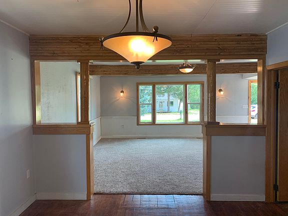 This 5 bedroom, 2 bath home is move in ready with many updates including new carpet and laminate flooring on the main floor, new metal roof in 2017, newer windows and a newer hot water heater. There are 3 bedrooms and laundry on the main floor. The home has a lot of character with wood beams, built in shelving and original hardwood flooring in the dining room, kitchen and 2 bedrooms. The home sits on 3 city lots on the edge of town and is very quiet and private. There is a large 1, 344 shop! Call today to see this great property! Seller will consider rent to own.