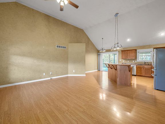 This ranch home on a full, finished, walk-out basement is ready for its new owner. The open floor plan features a living room, dining area and kitchen with vaulted ceilings leads you out to a large, covered back deck. All appliances including the washer and dryer stay. The primary suite offers access to that covered deck perfect for your morning coffee or just relaxing before bed. It also boasts a walk-in closet, a large bath with dual sinks, tub and separate shower. The laundry room and 2 additional bedrooms and full bath round out the first floor. Head downstairs to the walkout basement featuring a large family room, wet bar, game area and two additional bedrooms and a full bath. Walk outside to a large patio with a hot tub looking out over the fenced backyard. Need storage? This home gives you that too.
