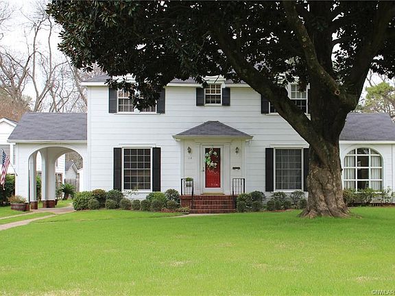 This immaculate, 2-story home is sited on TWO large lots. 1st floor features Original Living room with fireplace and large sunken Den with additional fireplace. Original wood floors throughout and woodwork that has never been painted. Large guest bedroom downstairs and three bedrooms upstairs. You reach the detached garage by driving through a porte cochere. The driveway extends all the way to the back of the lot for covered parking for 3 more vehicles or use as a covered outdoor entertaining area.