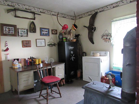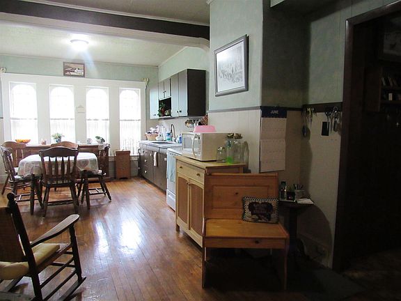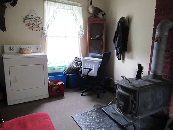 Charming home on a double lot with a U shaped driveway that goes around the back of the home. Stunning wrap around porch's, 3 story 2 car garage to store all the toys. 1st floor amenities include a woodstove in the entry/office, spacious eat-in kitchen, fireplace in the living room, 1st floor bedroom and laundry, beautiful woodwork and hardwood floors. 2nd floor boasts 4 bedrooms and a bathroom and access from one of the bedrooms to the second floor wrap around porch. Large yard. ATV from home to the trails. Seller to find suitable housing.