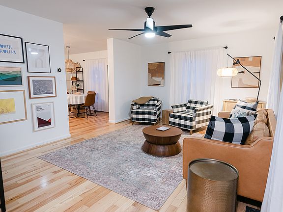 Walk or bike to all West Asheville has to offer. This adorable modern + updated home is located in a quiet neighborhood with no through traffic and both a walking trail and forested greenway. The home itself feels like a private, mountain retreat with no homes either across the street or behind the property. The home itself offers spacious living, kitchen, and dining areas as well as a comfortable front porch. The kitchen is newly renovated with solid surface countertops and stainless steel appliances. The bedrooms have brand new furniture and the full bathroom has new tile, vanity, and storage. Washer and dryer Fenced-in yard Garage and off-street parking Utilities and internet included. Monthly lawn + leaf care included. Utilities (electricity, water, and internet) included. One dog allowed with $250 non-refundable pet deposit. No smoking inside the home. Last month's rent due at signing. Six and twelve-month rental periods available.