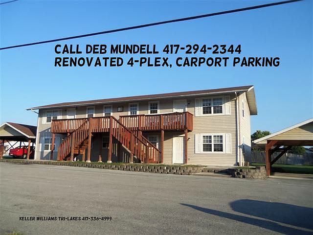 Excellent investment opportunity in Kirbyville! Gross monthly rent is $2,570 with excellent potential for growth. This four plex has been meticulously cared for and upgraded by it's current owners, who are now ready to share it with you. Each of the 4 apartments are 2 bed, 1 bath with a private laundry room, 1 covered parking space and a private 6x10 storage unit. Extensive upgrades include a freshly fenced backyard, vinyl siding, sealed parking lot and new composite front decking. This low maintenance building is ideal for the owner to occupy 1 unit and take advantage of the 24x24 garage just STEPS from Unit 5. Like the entire property, this garage is immaculate with built-ins and a fully floored attic with pull-down stairs. If you are looking for a low-maintenance investment, this is it!