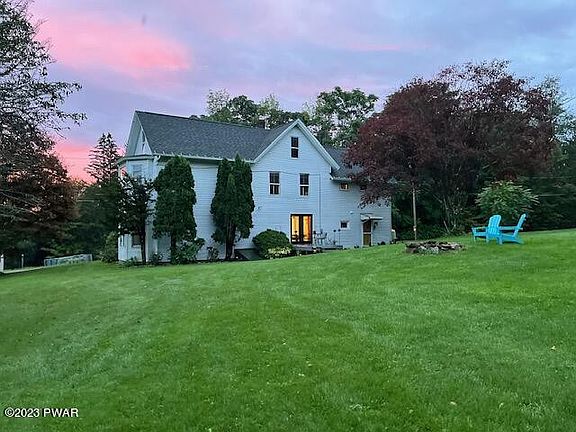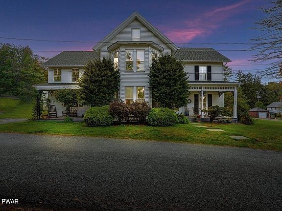 Fully furnished, turn key, new forced oil furnace and roof in last 5 years. Nearby Lake Ariel..Lake Views and sun glistening off the Lake visible about late October to April..Lake Ariel Lake access only for homes on the Lake. On a quiet Lane of 6 homes..the 4th nearly the back and backs to land-locked woods. Pins are visible for properly line, back is rock wall..behind the detached 3-car garage with a Lift in the center. Electrical outlet and lights and overhead storage on 2 sides. Rural Village yet elbow-room neighbors, and close to Honesdale, Hawley and back to Dickson City/Scranton. Apple trees, 2 large Maples, lilacs, Rhodies, Hydrangeas and 1 Dogwood..2 covered front porches. Finished attic for more space. Comes with zero turn cub-cadet., Beds Description: 2+BED 2nd, Baths: 1 Bath Level 1, Baths: 1 Bath Level 2, Eating Area: Formal DN Room