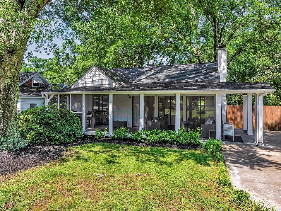 This is the one you have been waiting for and yes, it is in the extremely desirable Augusta Road area and on a fantastic street within walking distance to all that Augusta Road has to offer to include shopping and restaurants and within only a few minutes of downtown Greenville, South Carolina! This fully renovated classic charmer has it all to include an absolutely incredible yard that is large in size and is fully fenced with an additional dog run at the deep rear portion surrounded by heavy oak trees and also mature landscaping throughout the front yard as well as the rear. As you approach this time, you will love the curb appeal with its large and inviting front screened porch and its beautiful curb appeal with its robins egg blue side-entry. As you enter this home you will absolutely love the open floor plan with a living room and dining room as well as the kitchen which are all centrally located with dual access to front screened porch as well as direct access to large rear deck that overlooks this extremely deep and mature rear yard that is truly a rare find in this location at this price! The living room has a handsome gas log fireplace complete with custom traditional mantle, triple sliding door, full glass wall to front screen porch area that is large enough to entertain family and friends as well as room for dining. The gourmet kitchen comes with gas range and stainless steel appliances, an entire wraparound elevated quartz bar, a deep farm sink, ample cabinetry, beveled edge subway tile backsplash, and so much more! The kitchen is open to a dining area and flows well to rear drop zone and directly to the large wraparound rear deck that overlooks this amazing private yard! The two guest bedrooms are both large in size and both come with two closets each! The larger guest bedroom suite has a vaulted ceiling as well. Both guest bedrooms share a conveniently located hall bath complete with new marble floor tiles, subway tiled wall throughout bathroom as well as tub-shower combo. You simply will not believe the large master bedroom suite at the lower level with his and hers closet, new flooring, direct access to rear yard and fire pit area through French doors. The master bathroom has been fully renovated and comes complete with a walk-in fully marble tiled shower complete with seat bench and niche, custom glass shower door, and his and hers vanity with additional storage as well! Additional features this home has are beautiful oak hardwood floors throughout main living area and bedrooms, a large pantry space, laundry room with additional storage, canned lighting, concrete driveway with additional parking pad, and the list goes on and on!.......... Agents..... Please walk your buyers all the way to the back of this yard to truly appreciate the depth and size of it which is HARD to find in this area on a great street like this (zoned to great schools to include Blythe Elementary, the award winning language immersion school) which is within walking distance! This turnkey residence with this Amazing yard and all that this home comes with can be yours today!!! So come on and take your tour today and make this house become your HOME!!