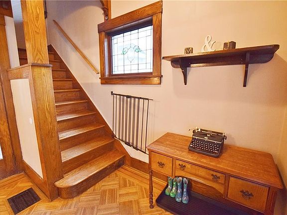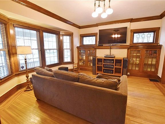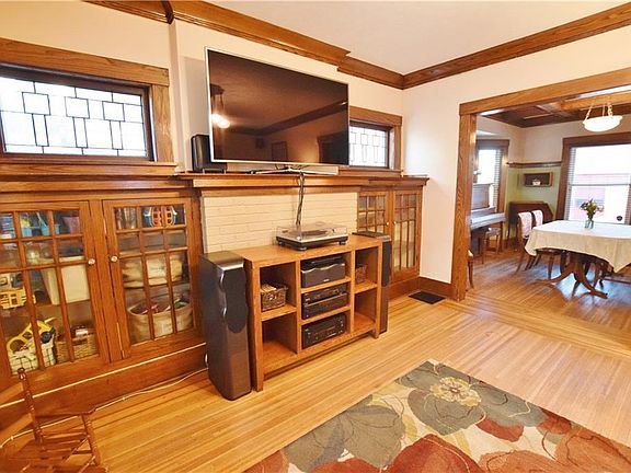 Sweet charmer that is ready for you to move right in! Step into the foyer with natural wood trim and hardwood floors. The living room has a walking bay window and faux fireplace surrounded by built in cabinets. Coffered ceiling in the formal dining room. Kitchen has space for stools at the counter and a full butlers pantry! Upstairs is 3 bedrooms with a sleeping porch off of the master. Walkup attic is partially finished for some bonus space! Open front porch, Vinyl siding, updated windows, fully fenced yard.