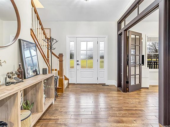 This home is the total package! 4 Beds 3.5 baths set atop 11+ park-like acres offering gorgeous views a 40x50 pole barn & the perfect mix of open & wooded ground. This 1.5 story home has been expanded & tastefully updated throughout! The front porch is so inviting, plenty of space to relax & enjoy the peaceful views. The main floor boasts gleaming hardwood floors and an impressive vaulted great room. The kitchen is a chef & entertainers dream with a massive island and multiple ovens ready for you to cook a feast! The butlers pantry offers 2 additional customizable refrigerator/freezers. The owner’s suite with his & hers closets & a fabulous bathroom is conveniently located on the main floor. Upstairs you will find 3 generously sized bedrooms & full bath. The walkout basement is equipped with a theater room, rec space, workout room, full bath & a wet bar. Out back you'll find a massive patio & maintenance free decking overlooking the open yard space leading to acres of wooded privacy.